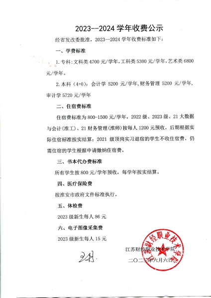 2023--2024学年收费公示