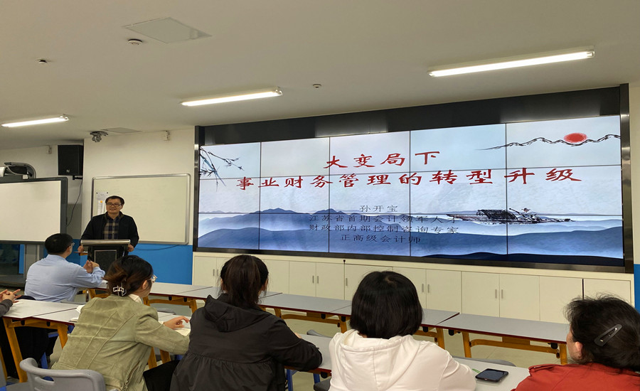 为加强财务管理,规范财务工作,提高服务效能。10月26日,财务大讲堂系列讲座在智慧商科会议室拉开序幕。淮阴工学院计划财务处处长、江苏省首期会计领军人才、财政部内部控制咨询专家、正高级会计师孙开宝以“大变局下事业财务管理的转型升级”为主题进行了讲座。会议由财务处处长蔡清龙主持。
