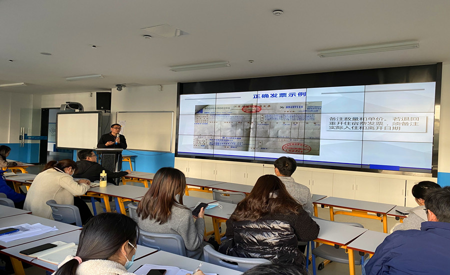 培训会上,蔡清龙处长传达了近年来学校各类审计以及巡视巡察工作中提出的一系列整改意见和要求,并从四个方面进行了专题培训和讲解:首先介绍了报销签批的基本流程;其次深入讲解了日常报销的注意事项;接着对单据粘贴注意事项进行了强调;最后提出需要认清六个方面的财务基本认知。